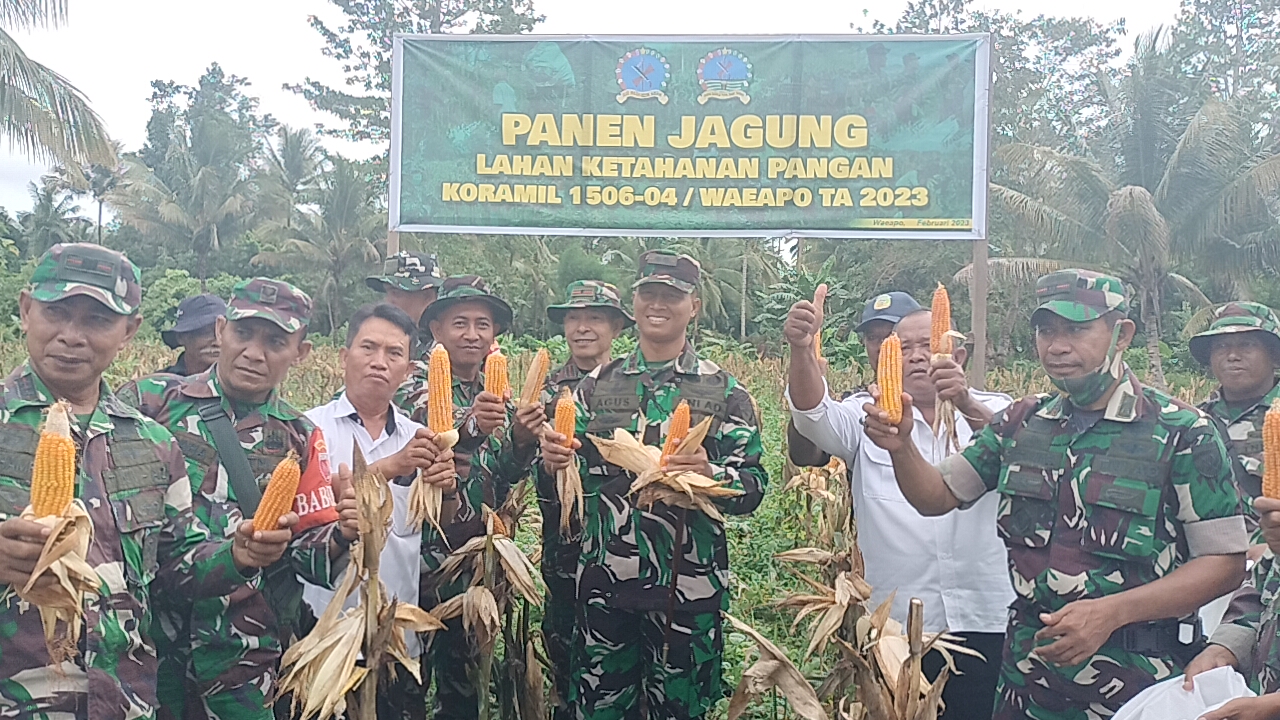 Dandim 1506/Namlea, Letkol Arh. Agus Nur Fujianto gelar panen jagung di Koramil 1506-04/Waeapo, Rabu (1/2/2023).