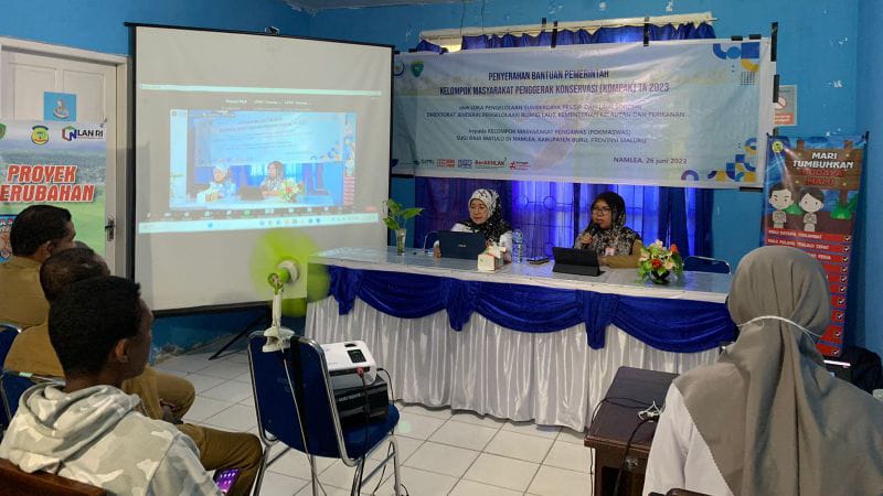 Acara penyerahan bantuan konservasi Tahun 2023 oleh LPSPL Sorong, dibuka langsung Kepala Dinas Perikanan Kabupaten Buru, Ufairah bin Thahir dan didampingi Perwakilan LPSPL Sorong selaku Kepala Urusan Umum, Rosmini.
