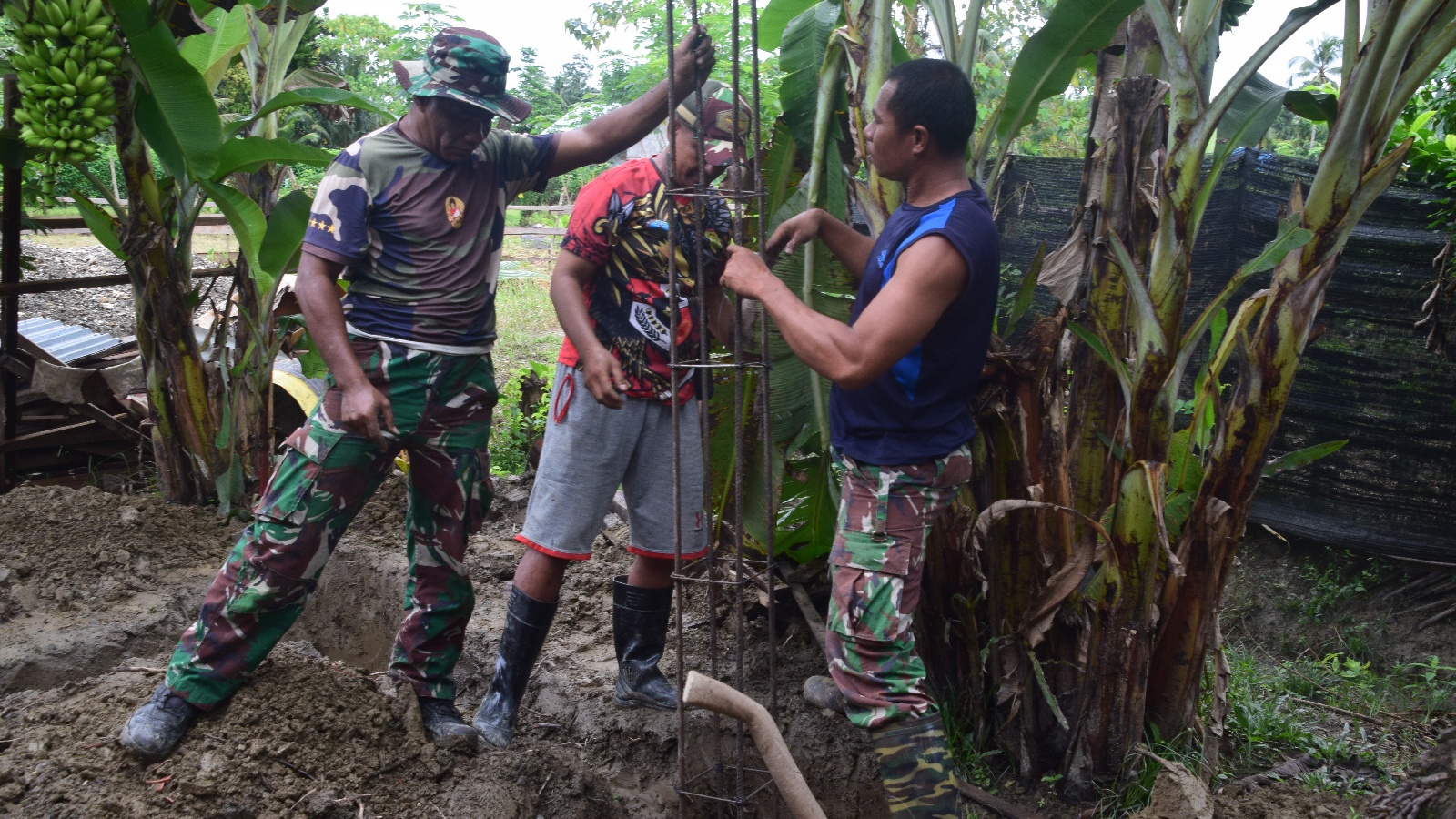 Selain anggota Satgas TMMD, warga di Dusun Bantilan juga turut ikut bergotong-royong dalam pekerjaan tersebut.
