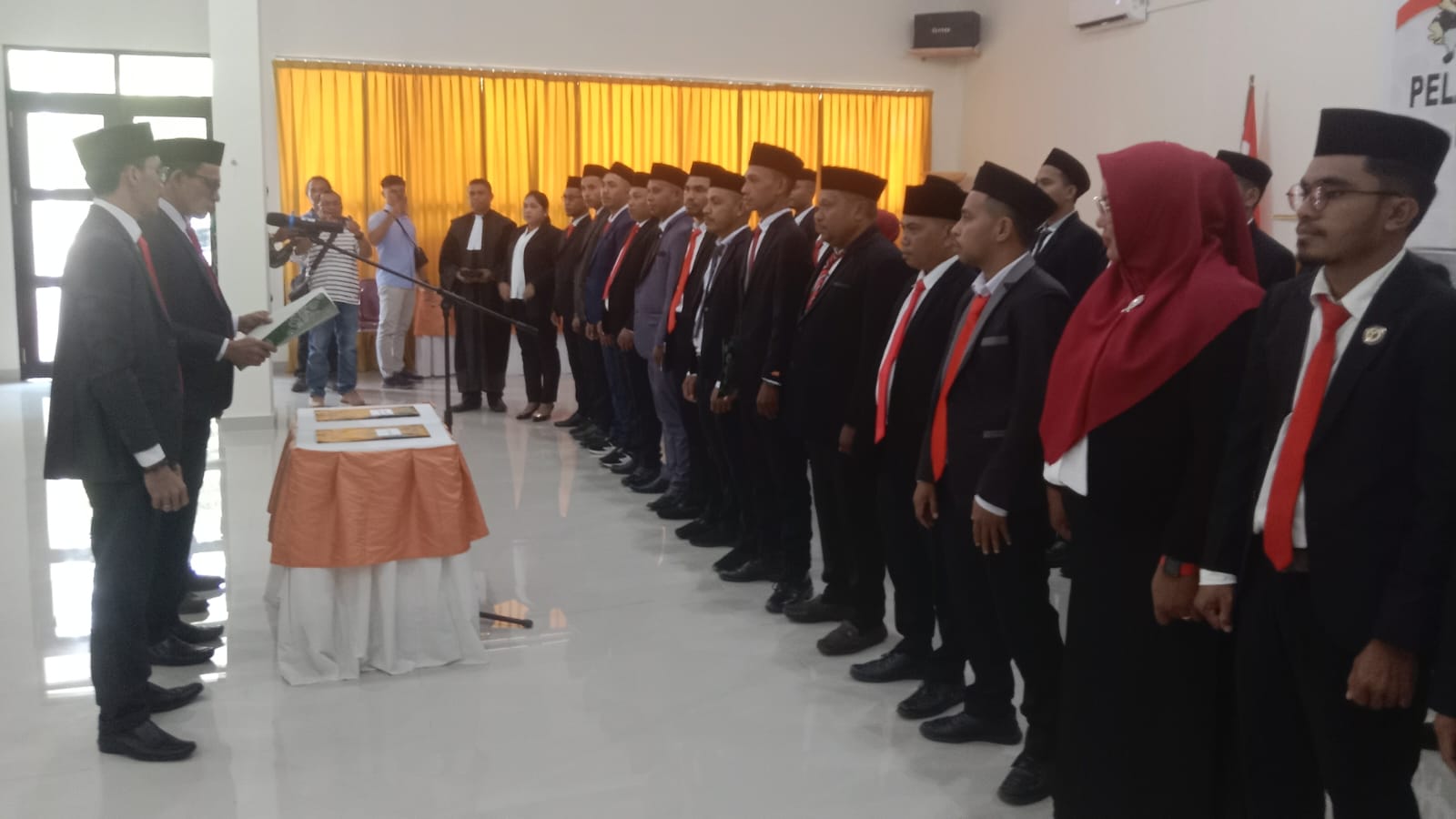 Pelantikan anggota Panwascam berlangsung di Aula Hotel Gren Sarah, Namlea, Kabupaten Buru, Maluku. Sabtu (25/5/2024).