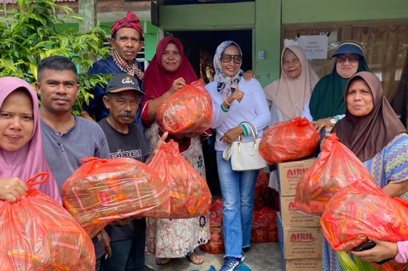 “Bantuan yang diberikan itu terdiri dari 200 dos mie instan, 200 dos air mineral, 200 kg gula pasir, 200 dos daun teh celup dan ratus pakaian layak pakai, merupakan sumbangan dari warga KKST yang diberjualan di pasar Namlea,” kata Tomia.