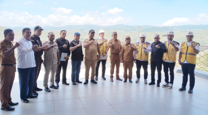 Wakil Gubernur Maluku, H. Abdullah Vanath foto bersama dengan pihak Bendungan, dan Pemda Buru, saat Kunker ke Bendungan Way Apu, Kabupaten Buru, Maluku. Senin (11/8/2025).