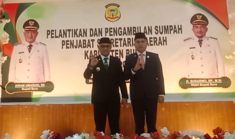 BERITAMALUKU.COM,Namlea – Bupati Buru Ikram Umasugi resmi melantik Azis Tomia sebagai Pj Sekertaris Daerah (Sekda) Kabupaten Buru. Pelantikan itu berlangsung di Aula kantor Bupati Buru, Namlea, Maluku, Rabu (31/12/2025).