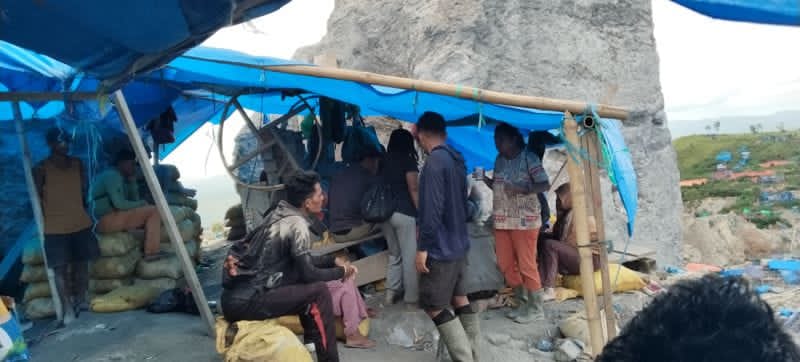 Hal itu terlihat dari salah satu penambang bernama Buyung, yang tengah melakukan aktivitas penambangan, berupa pengambilan material di kolam, pada lokasi Gunung Batu.
