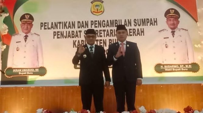 Azis Tomia Resmi Dilantik jadi PJ Sekda Buru, ini Pesan Bupati Ikram Umasugi